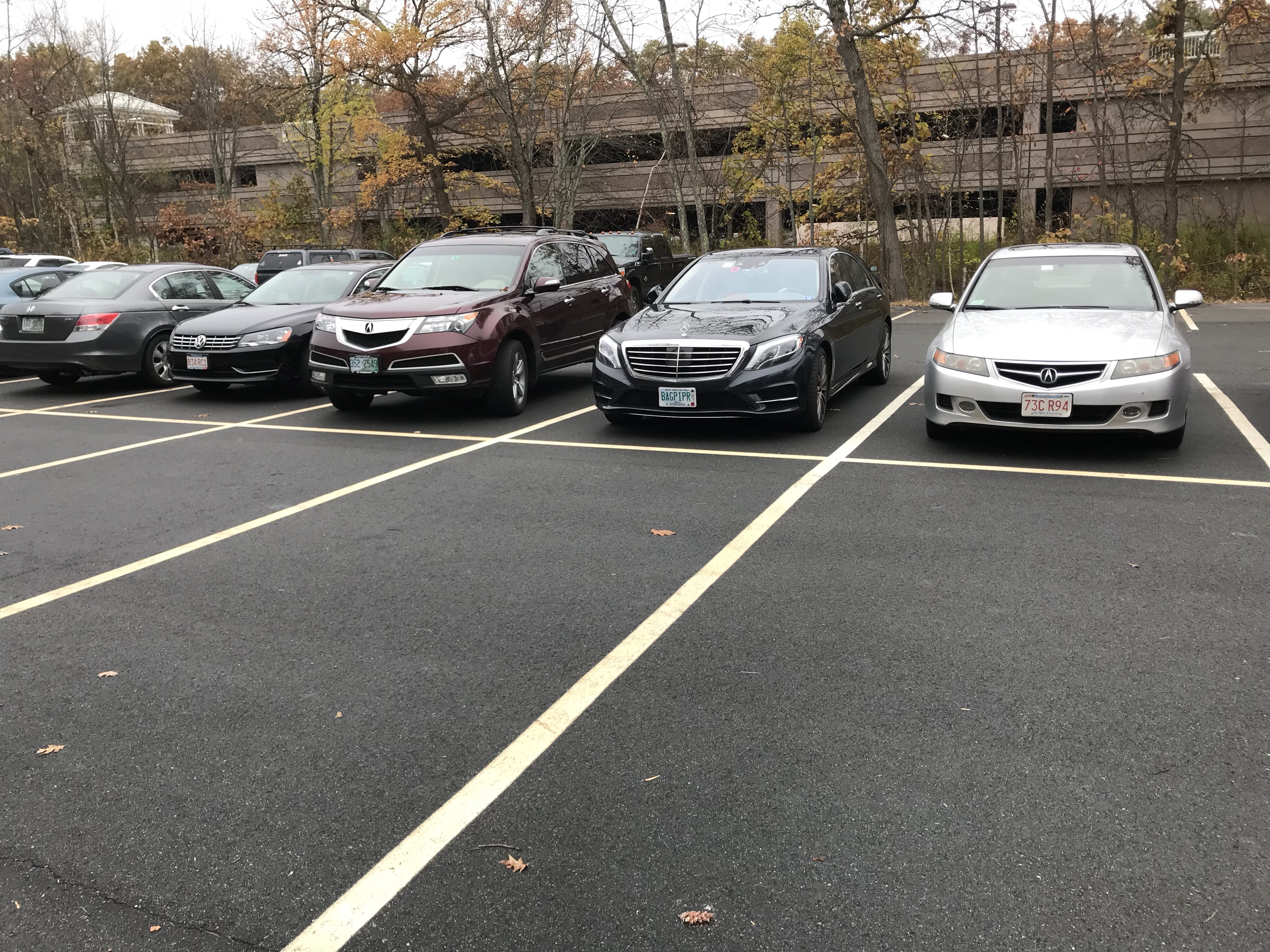 It’s 8:30 AM, people are just getting to work. The parking lot fills from left (near the building) to the right. There are multiple lots with several rows of opposing-car spaces each. Quick, what is SERIOUSLY wrong here?